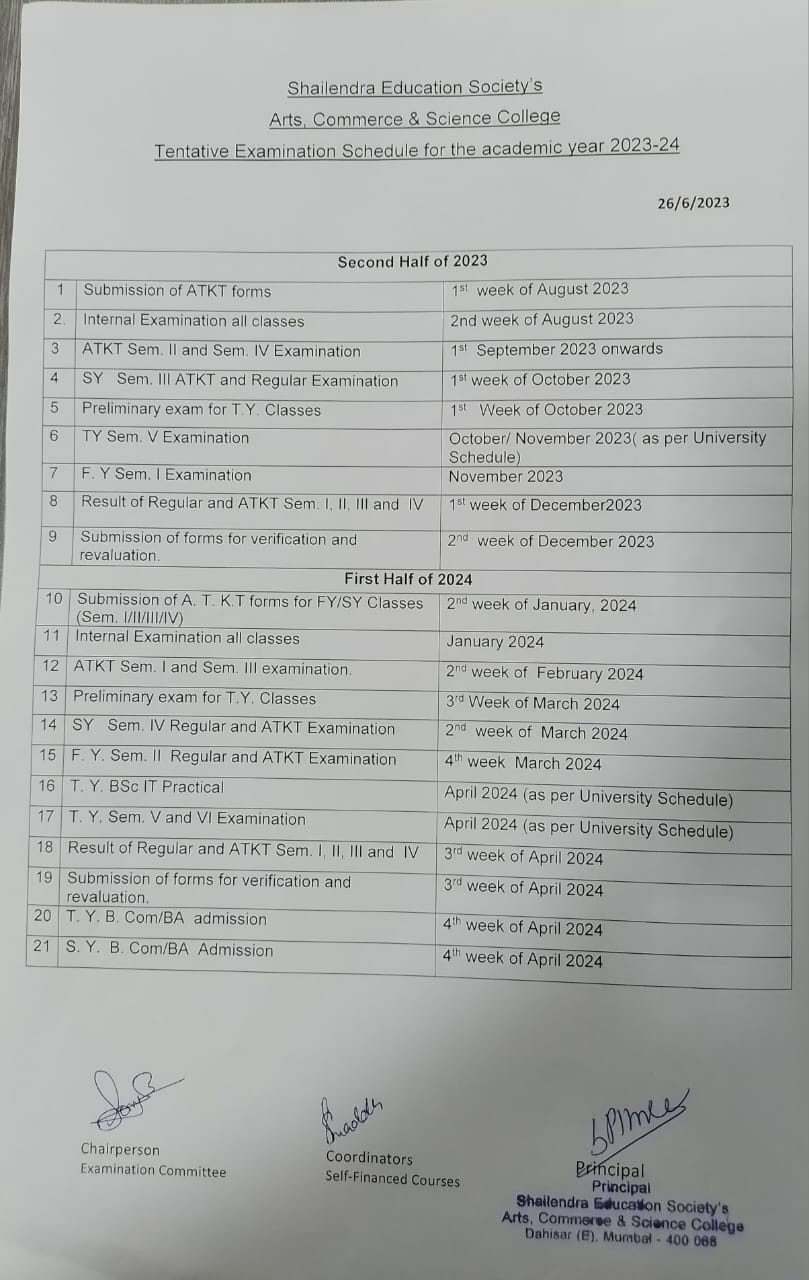 Academic Year 2023-24 Exam Time Table-Aided Section
