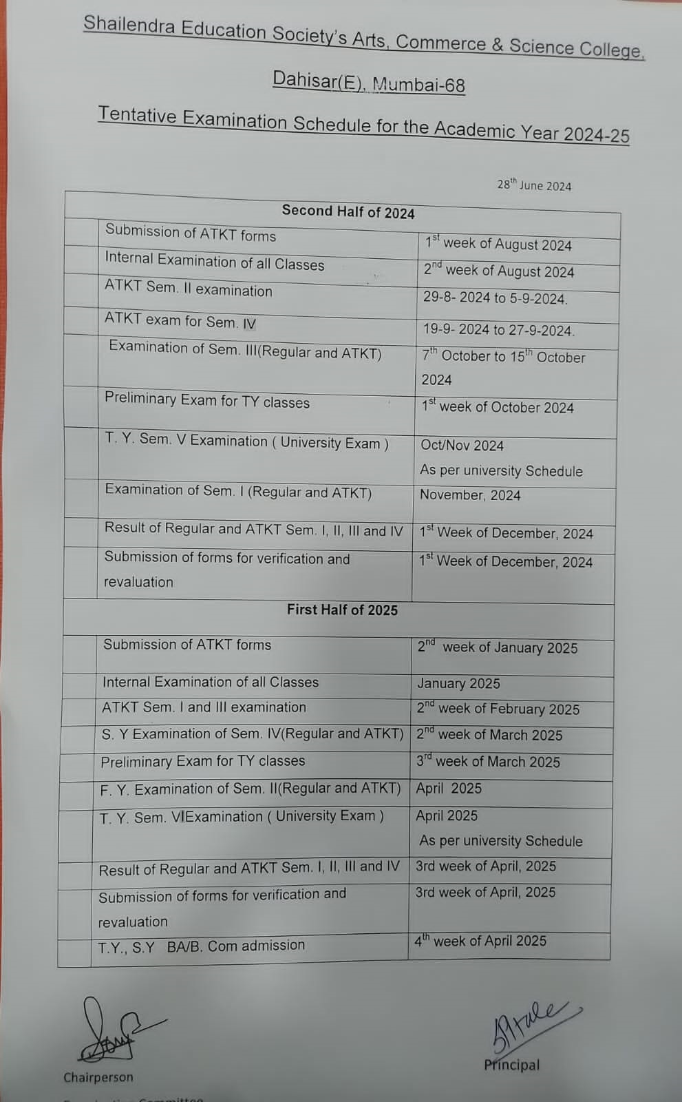 Exam Calendar 2024-25